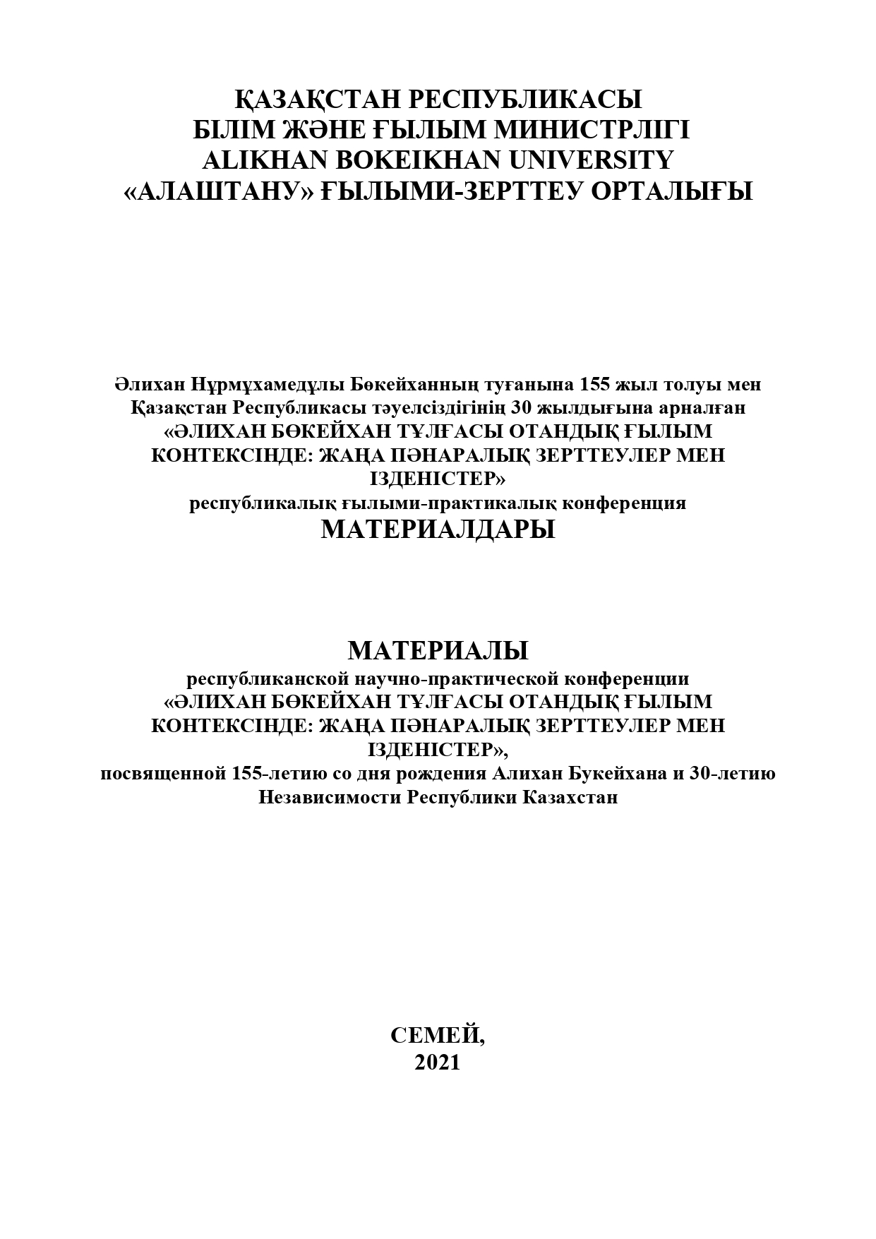 - «ƏЛИХАН БӨКЕЙХАН ТҰЛҒАСЫ ОТАНДЫҚ ҒЫЛЫМ КОНТЕКСІНДЕ: жаңа пəнаралық зерттеулер мен ізденістер»