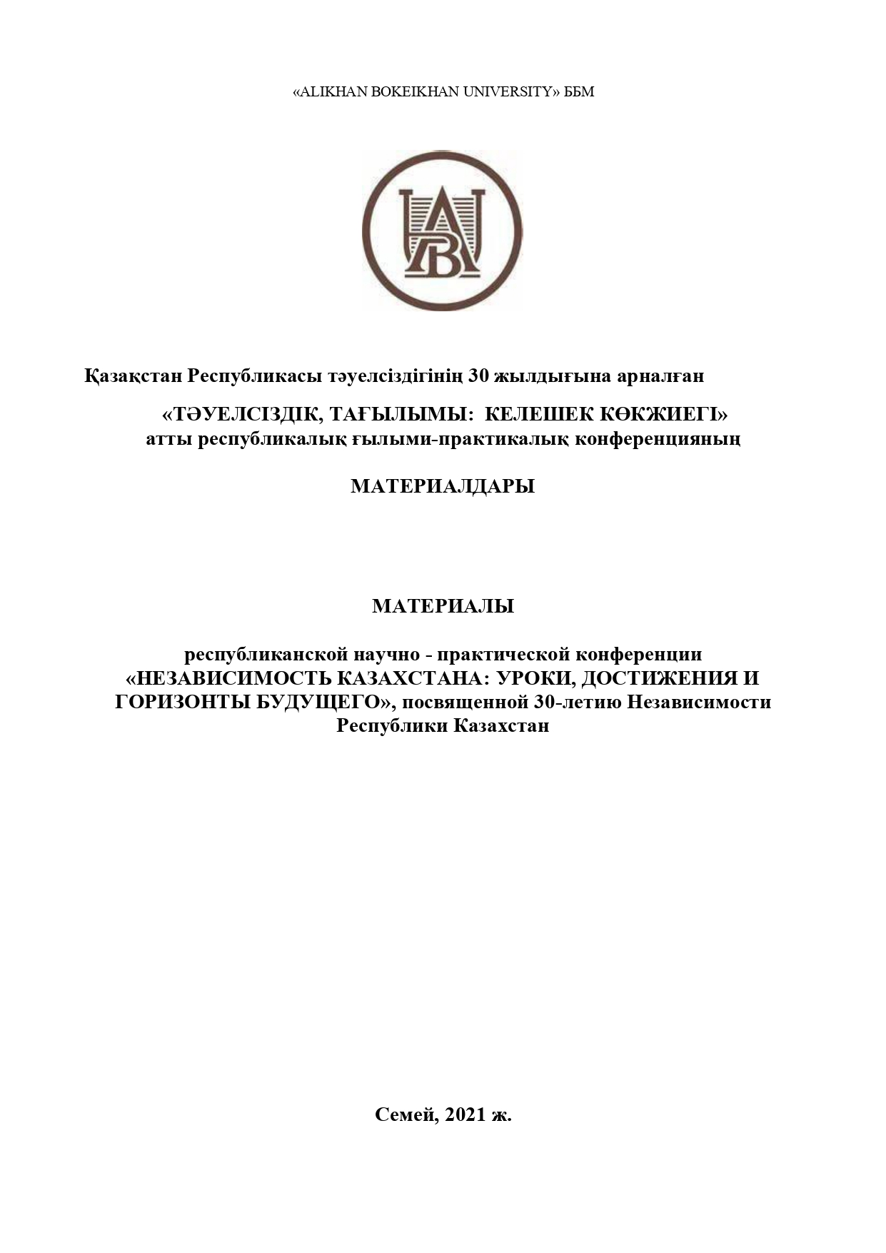 - МАТЕРИАЛЫ РЕСПУБЛИКАНСКОЙ НАУЧНО - ПРАКТИЧЕСКОЙ КОНФЕРЕНЦИИ «НЕЗАВИСИМОСТЬ КАЗАХСТАНА: УРОКИ, ДОСТИЖЕНИЯ И ГОРИЗОНТЫ БУДУЩЕГО»