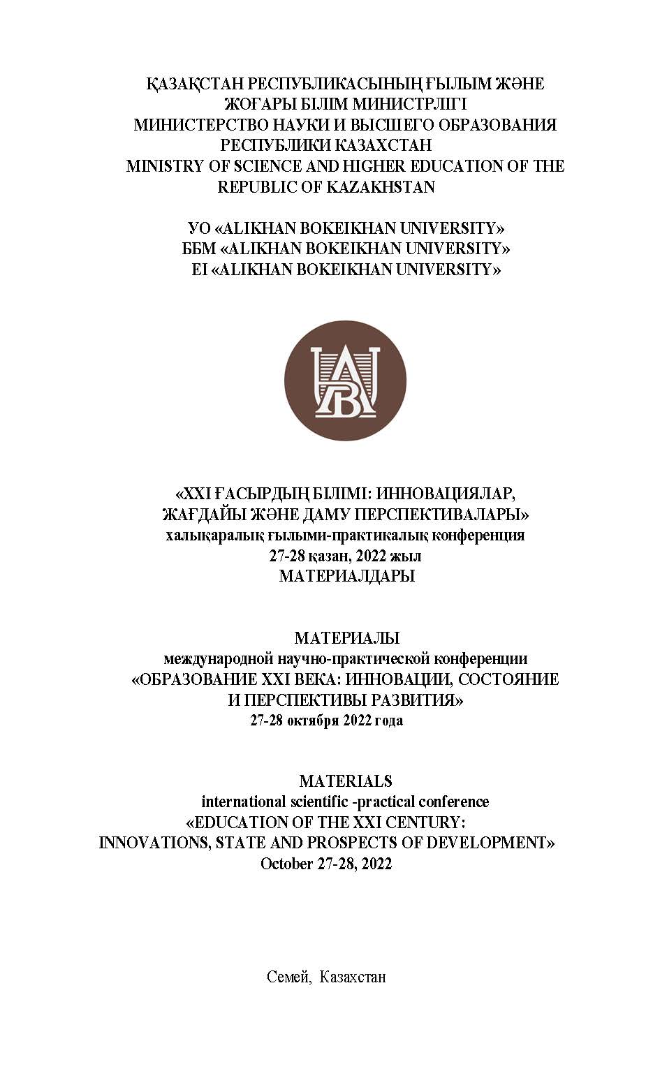 МАТЕРИАЛЫ международной научно-практической конференции «ОБРАЗОВАНИЕ XXI ВЕКА: ИННОВАЦИИ, СОСТОЯНИЕ И ПЕРСПЕКТИВЫ РАЗВИТИЯ» 27-28 октября 2022 года