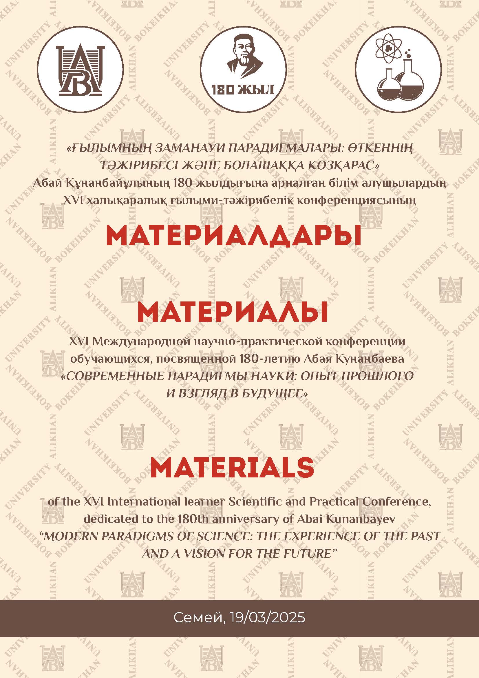 XVI Международной научно-практической конференции обучающихся, посвященной 180-летию Абая Кунанбаева «СОВРЕМЕННЫЕ ПАРАДИГМЫ НАУКИ: ОПЫТ ПРОШЛОГО И ВЗГЛЯД В БУДУЩЕЕ»