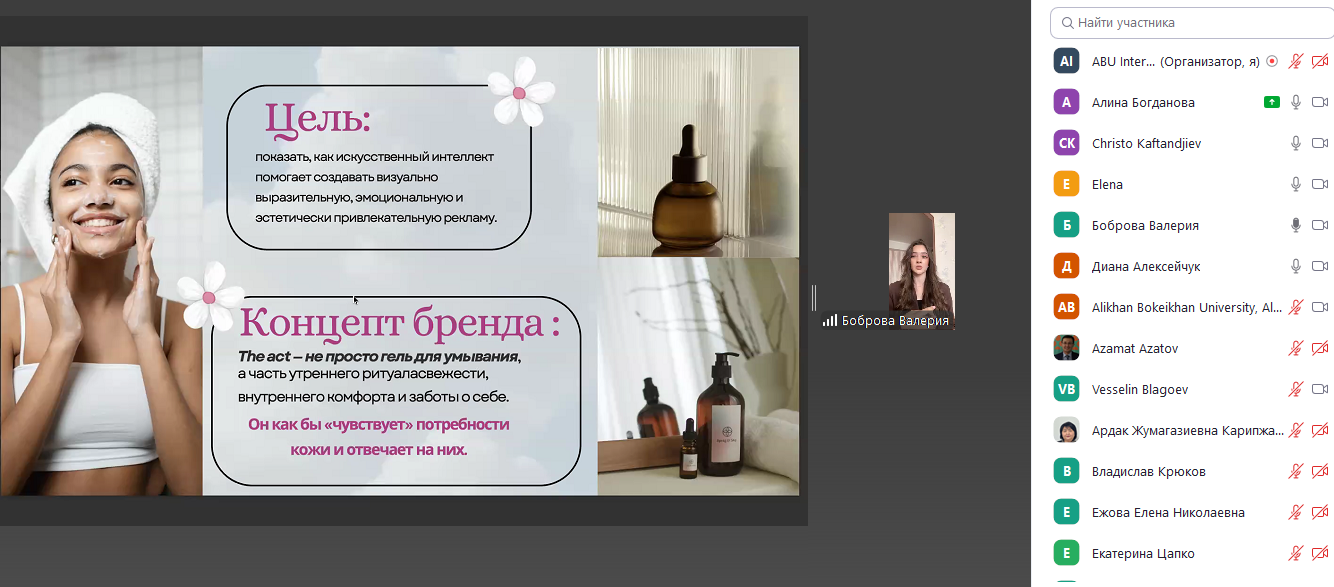 On June 24-25, 2025, an international competition of student projects on the topic “The best commercial advertising (using AI tools)” organized by ABU International Business School took place in the online format. The competition was a bright event that united undergraduate and graduate students passionate about advertising and new technologies from several universities.