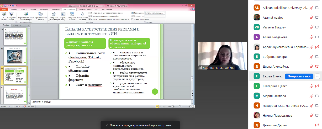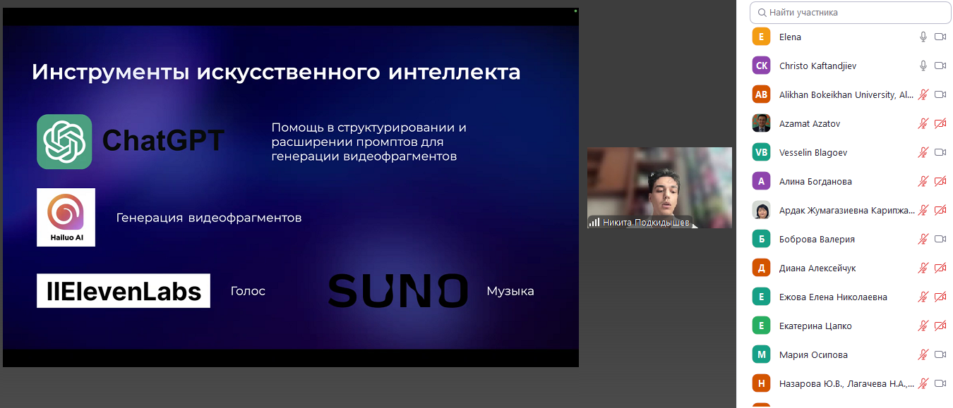 3rd place - master student of ABU (Kazakhstan) Nigmatullina S., project: Creation of advertising for language school “Right on” using AI