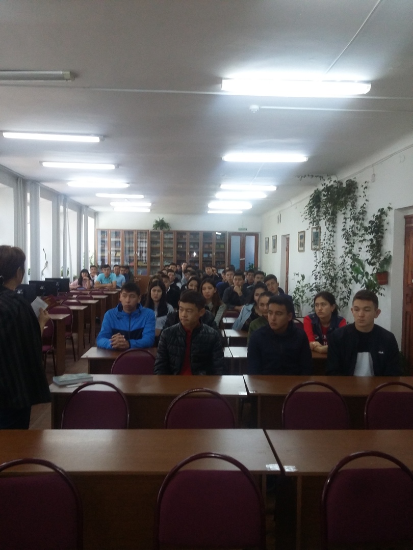 КазГЮИУ кітапханасында 1 курс студенттерінің ақпараттық мәдениет деңгейін және олардың өзіндік жұмыс істеу мақсатында 2018 жылдың 4-7 қыркүйек аралығында кітапханалық-библиографиялық сабақтар өтті. Кітапханамен таныстыру экскурсиясы: кітапхананың құрылымдық бөлімшелерімен, қызметтерімен, қорымен және кітапхананы пайдалану тәртібімен танысу, электрондық каталогтан ақпарат іздеу, электрондық деректер базаларымен жұмыс істеу, электрондық толық мәтінді деректер базаларымен, кітапхана сайтымен, «Жаңа гуманитарлық білім. Қазақ тіліндегі 100 жаңа оқулық» жобасы аясында шыққан әлемнің ең үздік оқулықтар тізімімен танысуға шақырамыз