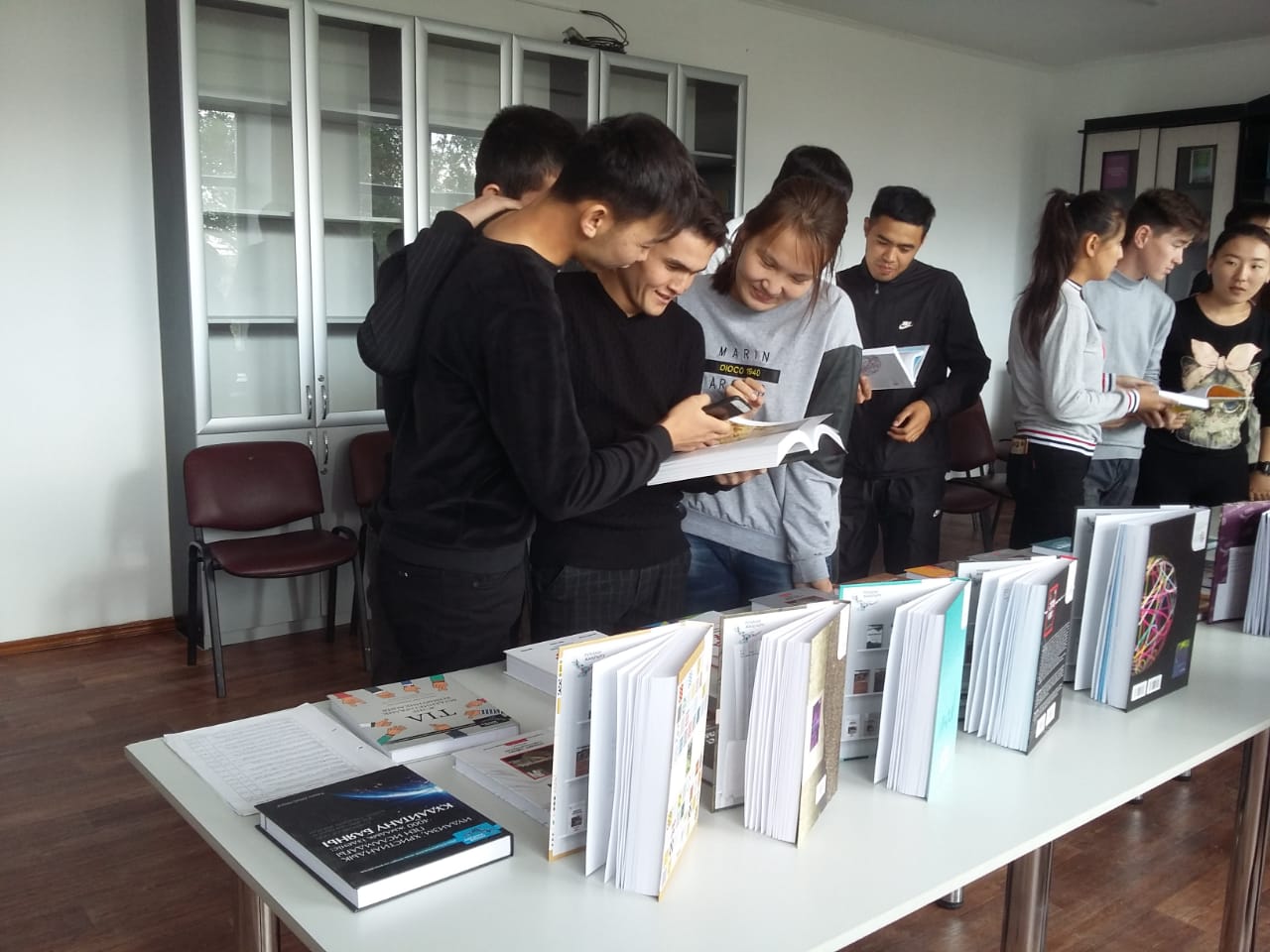 Сіздерді Елбасының «Жаңа гуманитарлық білім. Қазақ тіліндегі 100 жаңа оқулық» жобасы аясында шыққан әлемнің ең үздік оқулықтар тізімімен танысуға шақырамыз. Кітапханамызға осы жоба аясында 17 оқулық сыйға тартылды. Бұл тек қана кітапхана қорын толтыру ғана емес, бұл оқулықтар арқылы студенттеріміз әлемдік кеңістікке тараған ең үлгілі кітаптарды қазақ тілінде емін-еркін, дағдылы түрде оқи алады. Ең бастысы жастардың гуманитарлық салаға деген қызығушылығын арттыра түседі.