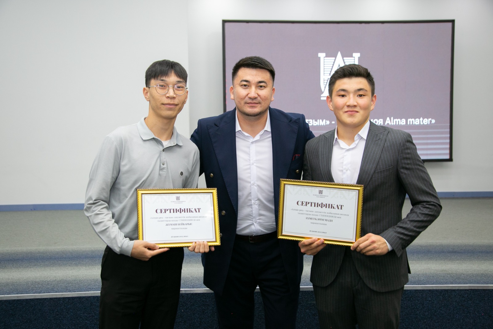 💫 Сонымен қатар жиын барысында түлектер бірқатар білім алушыларға өздері тағайындаған арнайы шәкіртақыларды салтанатты түрде табыстады.