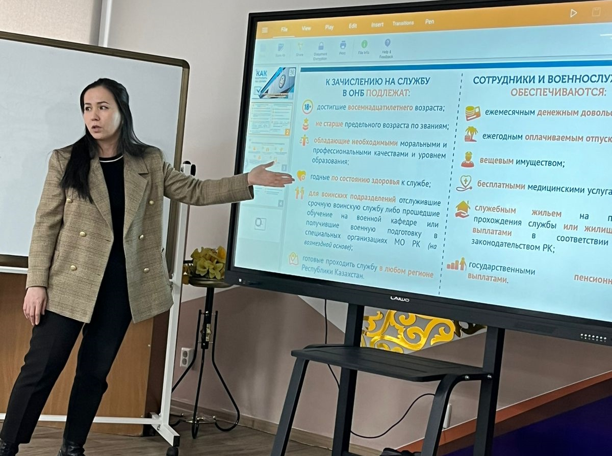 Мамандар түрлі мамандық бойынша оқуын бітіретін студенттерге Ұлттық қауіпсіздік қызметі органдарына жұмысқа тұруға шақырды. Студенттер, өз кезегінде, толғандырған сұрақтарын қойып, мамандардан жан-жақты жауаптар ала алды.