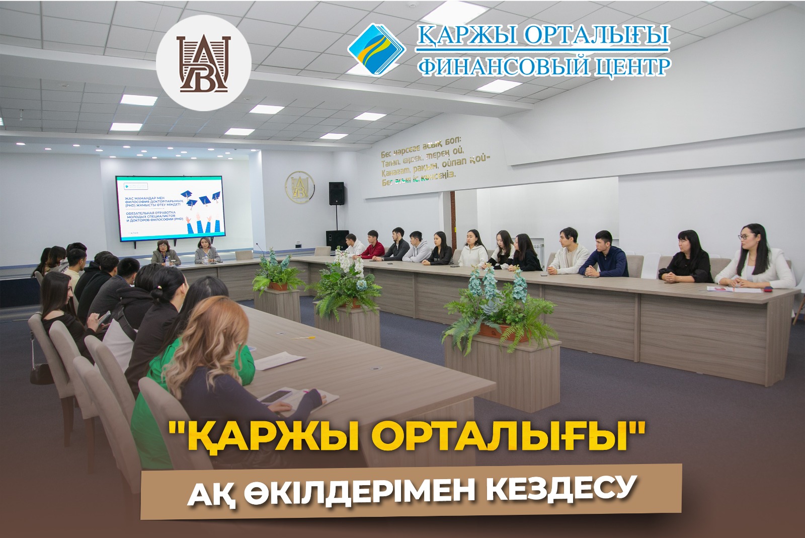 Кеше, 27 ақпан күні Әлихан Бөкейхан Университетінде "Қаржы орталығы" АҚ өкілдерінің бітіруші курс білім алушыларымен арнайы ақпараттық түсіндіру кездесуі өтті.