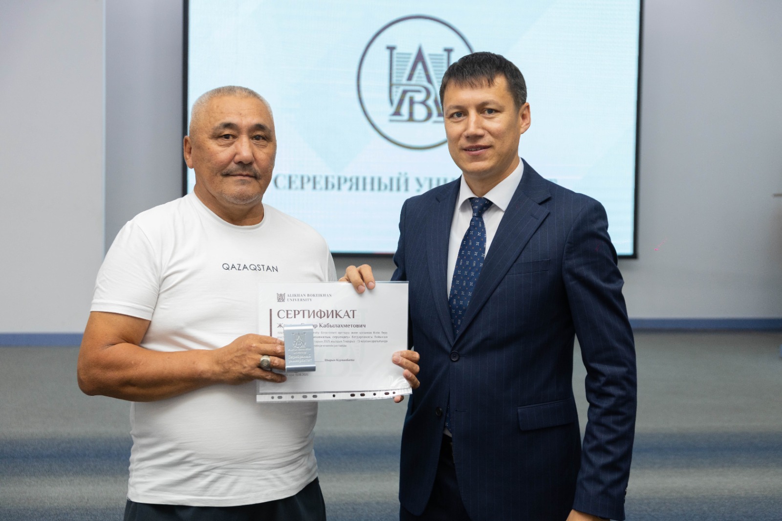 20 маусым күні Әлихан Бөкейхан №университетінде «Күміс Университет» бағдарламасының кезекті түлектеріне сертификаттар табыстау салтанаты өтті. Салтанатты рәсімде шет тілдері, цифрлық сауаттылық, скандинав жүрісі технологиялары сынды оқыту курстарын сәтті тәмамдаған түлектерге сертификаттар табысталды.